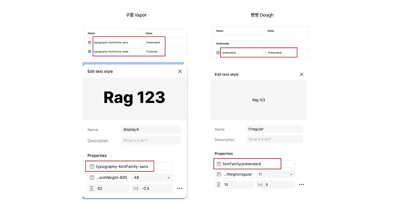 Vapor : Scaling 컬렉션 아래에 fontSize, lineHeight 지정 / Typography 컬렉션 아래에 fontFamily, fontWeight, letterSpacing 지정