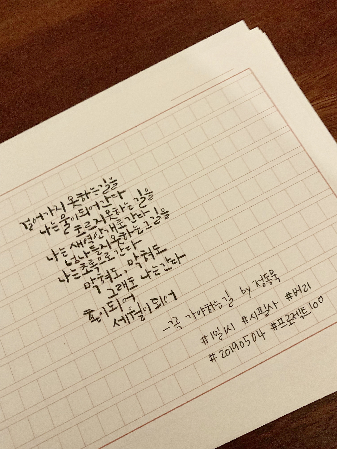 걸어가지 못하는 길을나는 물이 되어 간다.흐르지 못하는 길을나는 새벽안개로 간다.넘나들지 못하는 그 길을나는 초록으로 간다.막혀도, 막혀도그래도 나는 간다.혼이 되어세월이 되어