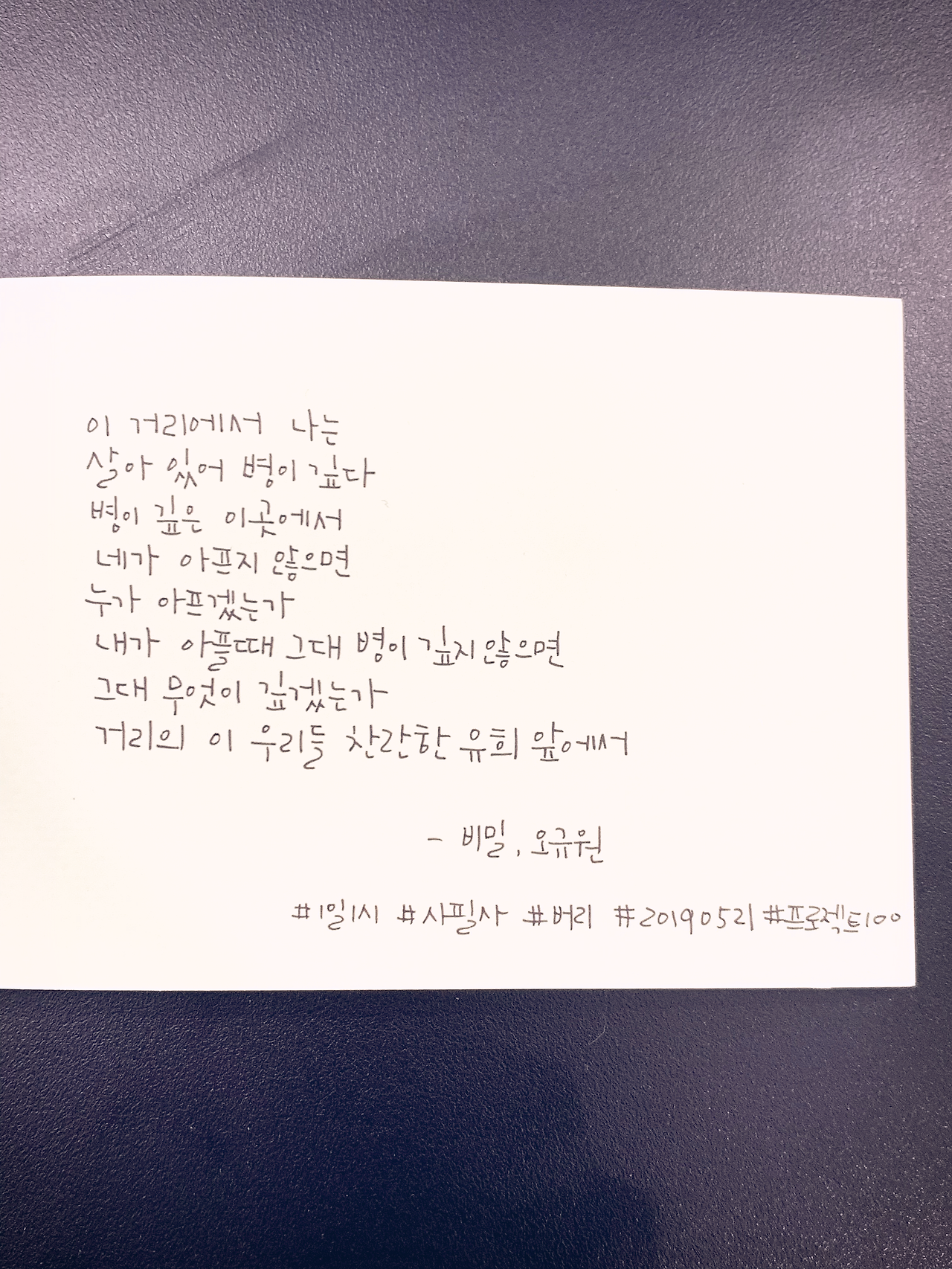 이 거리에서 나는살아 있어 병이 깊다병이 깊은 이곳에서네가 아프지 않으면 누가 아프겠는가내가 아플 때 그대 병이 깊지 않으면그대 무엇이 깊겠는가거리의 이 우리들 찬란한 유희 앞에서