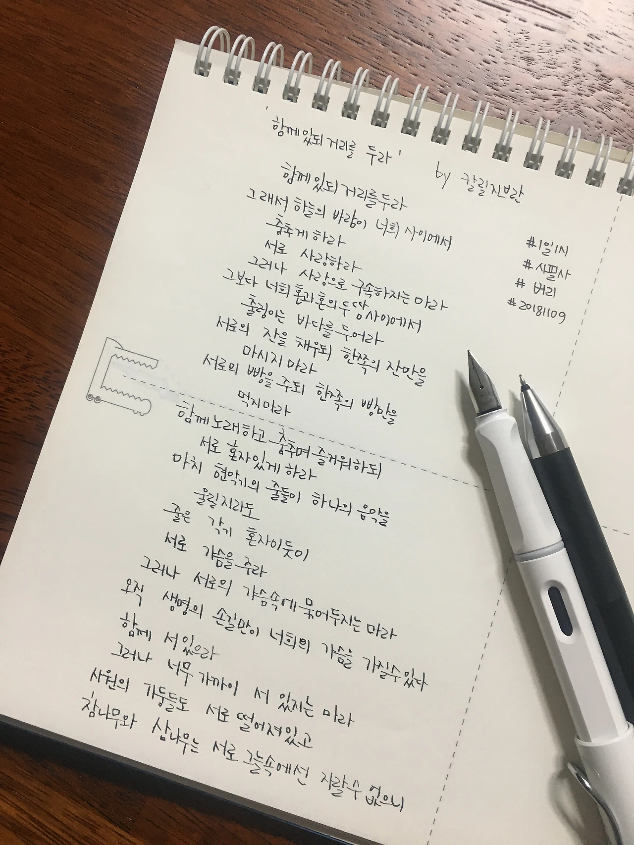 서로 가슴을 주라. 그러나 서로의 가슴속에 묶어 두지는 마라.