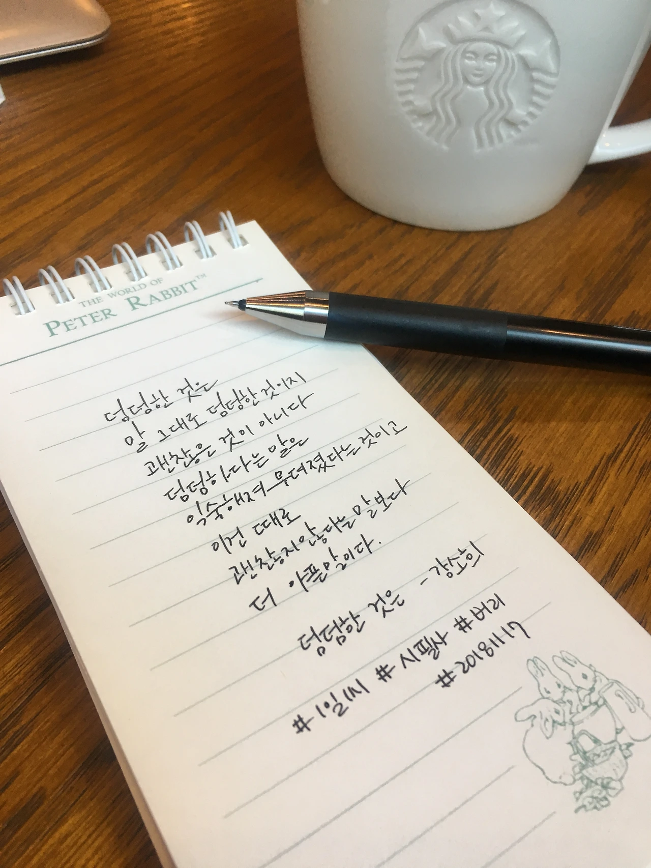 덤덤한 것은_강소희덤덤한 것은말 그대로 덤덤한 것이지괜찮은 것이 아니다덤덤하다는 말은익숙해져 무뎌졌다는 것이고이건 때로,괜찮지 않다는 말보다 더 아픈 말이다