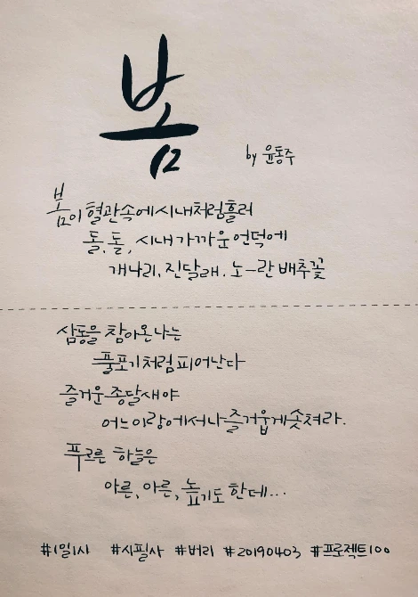 미세먼지가 잠시 물러난 자리에 찬 바람이 불고 있지만 어느새 봄이 내 옆에 와 있다.