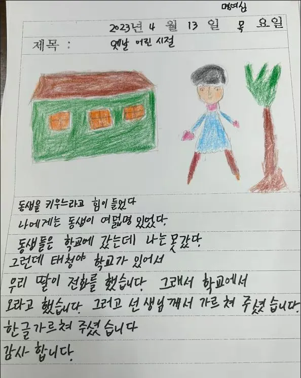 야학에 나오는 어머님, 아버님들은 5~60년 전 본인의 의사와 상관없이 학교에 다니고 싶었던 꿈을 포기해야 했습니다.