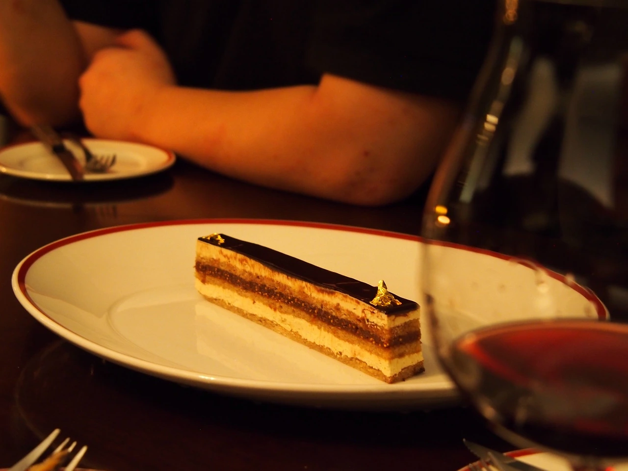 세 가지 레이어의 Opera cake