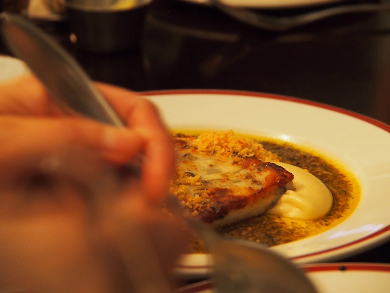 부드럽게 익힌 전복과 관자끄넬, 셀러리악 퓌레,