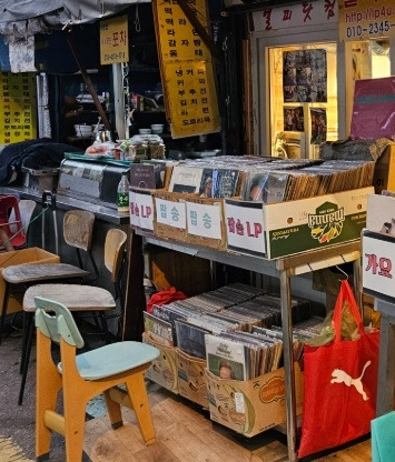 대부분 상가 밖으로 푸르딩한 복사판 엘피를 박스에 두고 있었다.