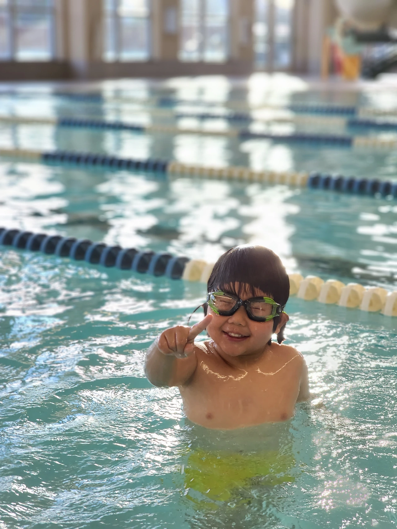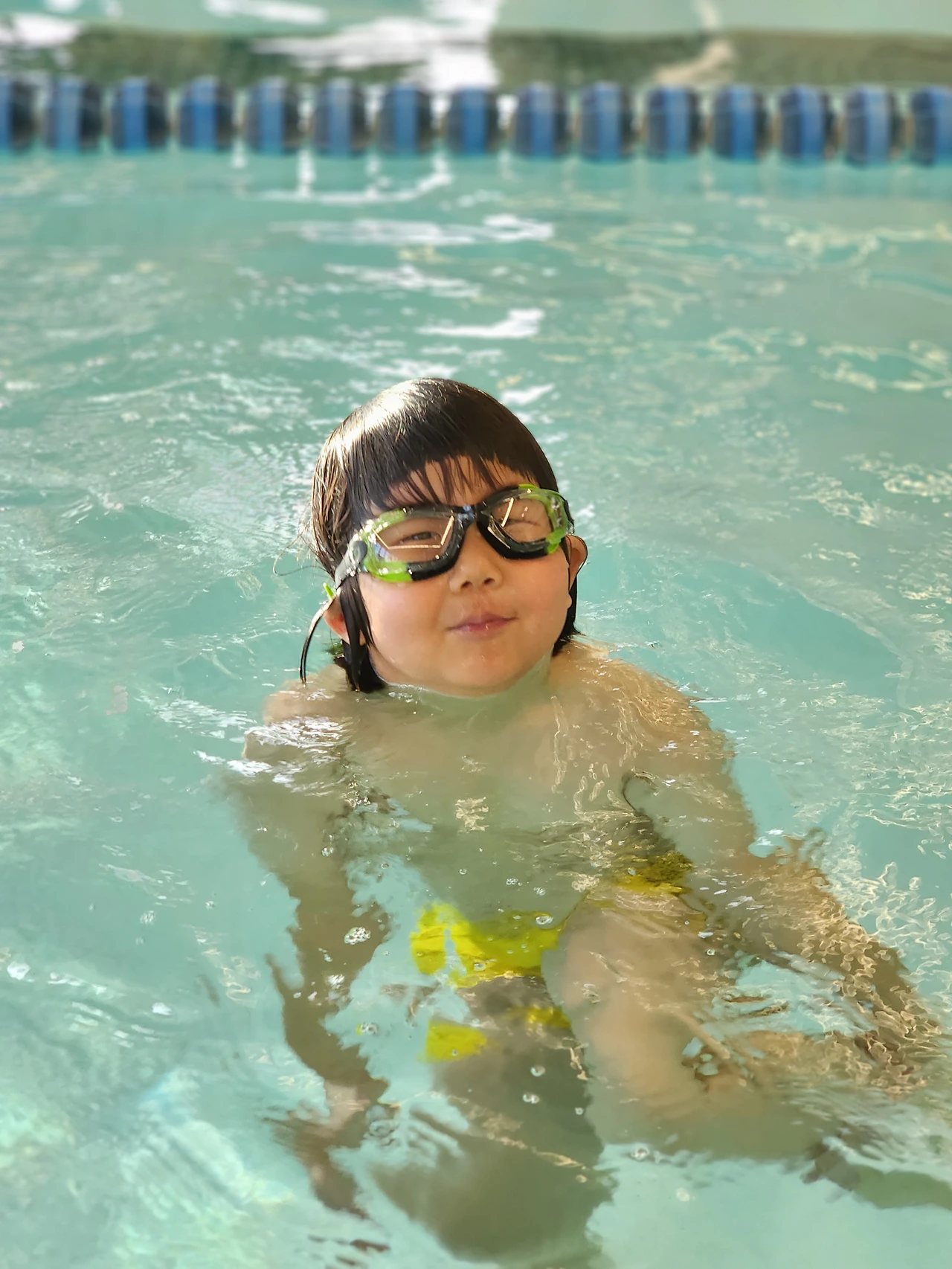 아이가 처음으로 수경을 끼고 수영을 했다.