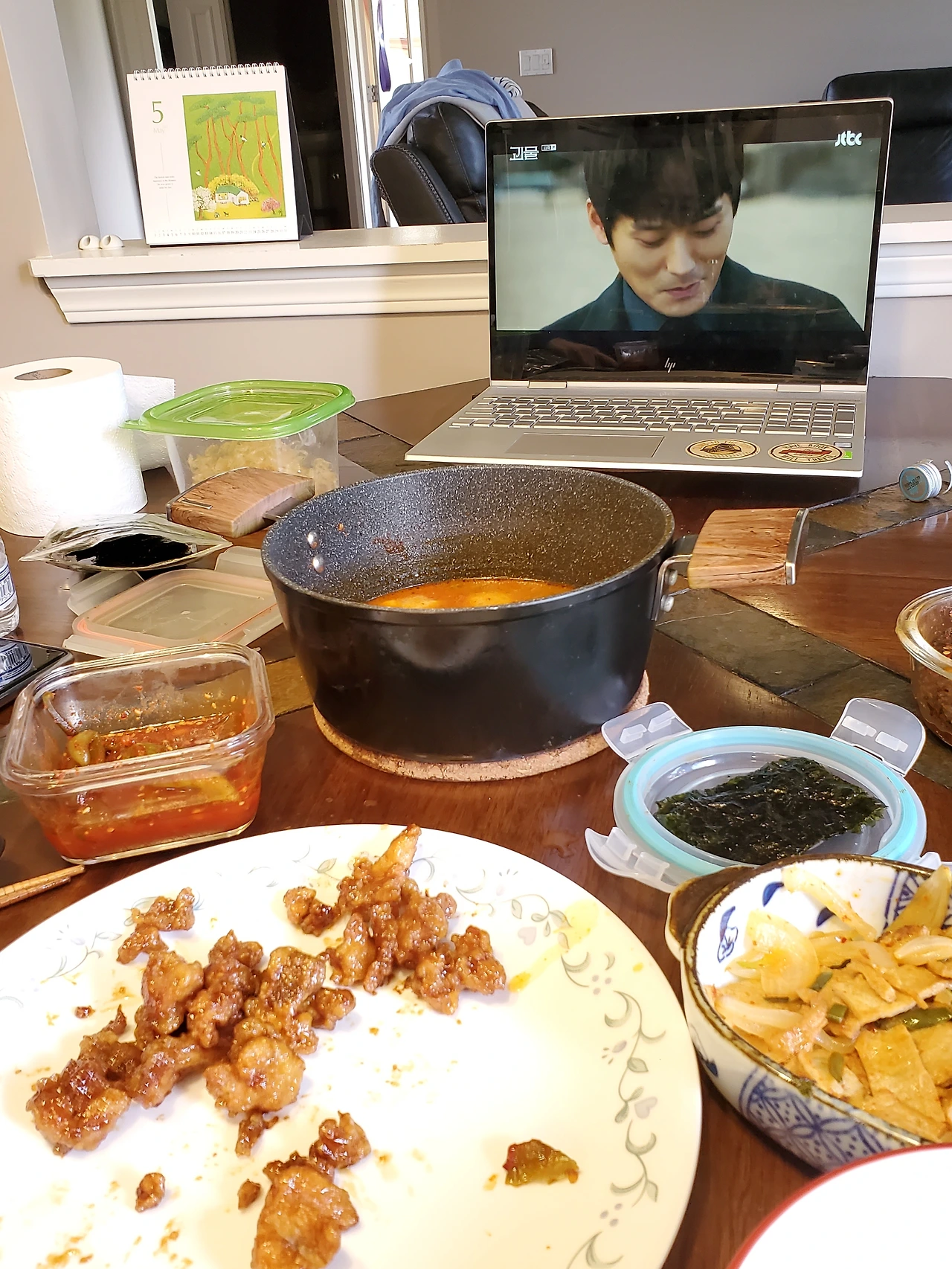 오렌지치킨을 만들고, 어제 먹다 남은 김치찌개에