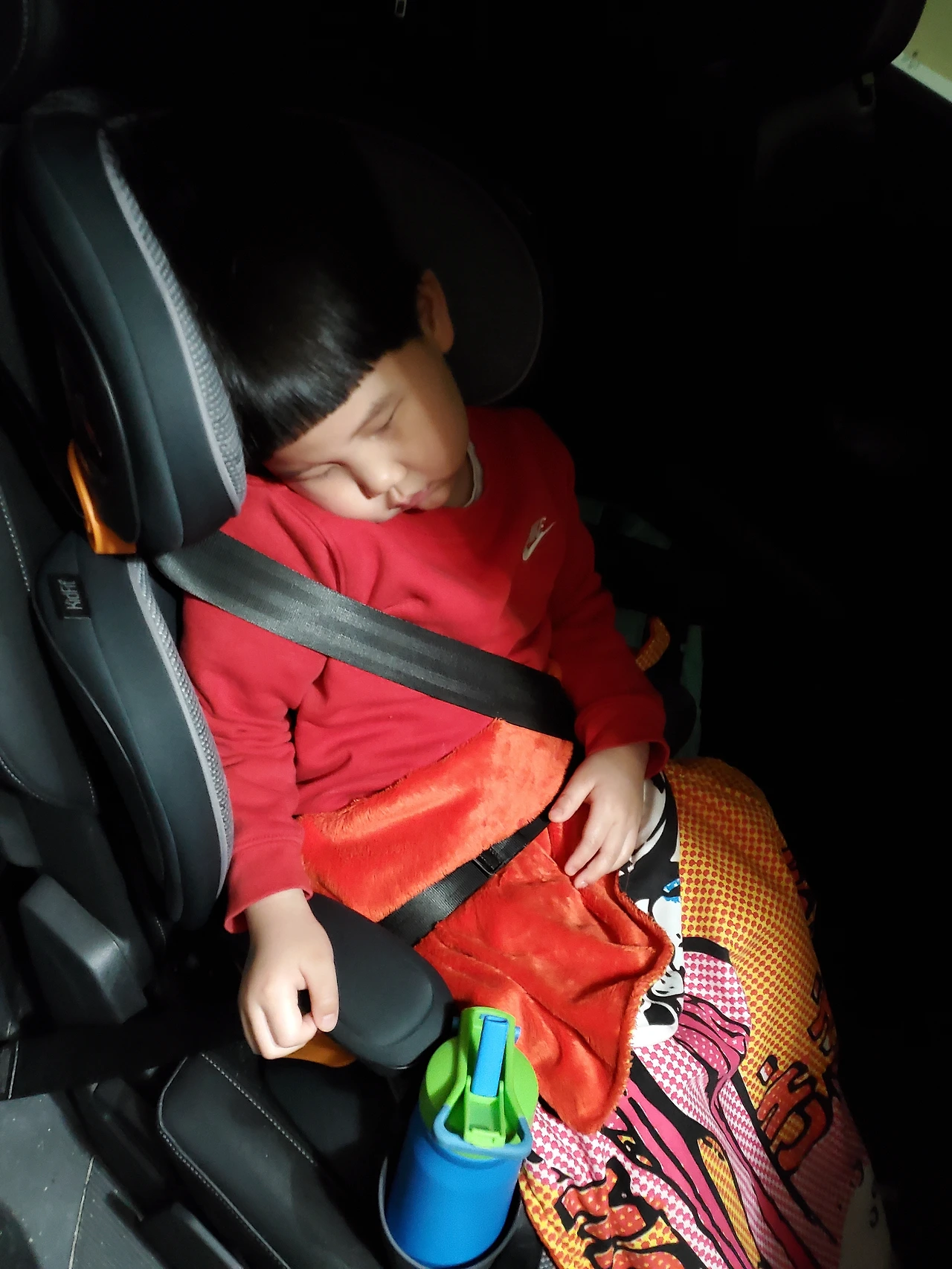 시간이 꽤 늦어서 아이가 차에서 잠들었으면 했다.
