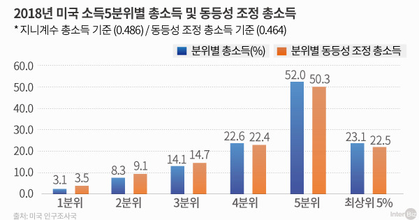 이런 점들을 고려하면 '달걀이 먼저냐 닭이 먼저냐' 하는 원인과 결과의 문제를 떠나 코로나19 사태는 빈익빈 빈익빈의 실태를 여가 없이 보여주고 있다는 것만큼은 확실하다. 사실 지금까지 상위 10~20%의 소득이 다른 계층 군에 비해 월등히 앞서가는 양극화는 꾸준히 강화되고 있었다. 미국 인구조사국과 노동통계국에 따르면 월스트리트발 글로벌 금융위기가 터진 2008년 이후 미국 지니계수(숫자가 커질수록 불평등이 심하다는 의미)는 꾸준히 늘어 0.5를 향해가고 있다.