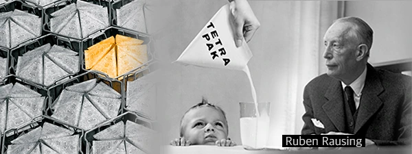 테트라팩을 만든 루벤 라우싱(Ruben Rausing)은 1930년대, 한 투자자와 함께 포장법 개발 회사를 운영했다. 그는 평소 식료품 유통 기술에 관심이 많았는데, 스웨덴에서 유통되는 우유들이 대부분 유리병이나 양철통에 담겨 판매되는 것을 보게 된다. 당시 양철통은 위생적이지 않고, 유리병은 제작비와 유통비가 굉장히 높았다. 설상가상으로 2차 세계대전이 발발하면서 원자재도 부족한 상황이었다. 유리병을 다시 회수한다 해도 이 역시 깨끗이 씻기 어려워 소비자들도 구매를 꺼렸다. 라우싱은 새로운 우유 포장법과 유통법을 개선할 방법을 강구하기 시작한다.