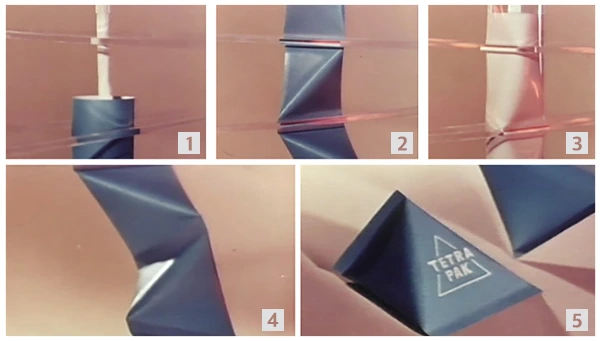 라우싱은 높은 열을 가해 밀봉한다면 우유에서 탄맛이 날거라 생각했지만 예상외로 우유에서는 탄맛이 나지 않았다. 이때 우유가 채워진 부분이 밀봉되면서 용기가 4면체 모양을 띄게 됐다. 라우싱은 그 모양에서 착안해 그리스어로 4를 가리키는 '테트라(Tetra)'를 넣어 '테트라팩'이라는 이름을 붙였다.