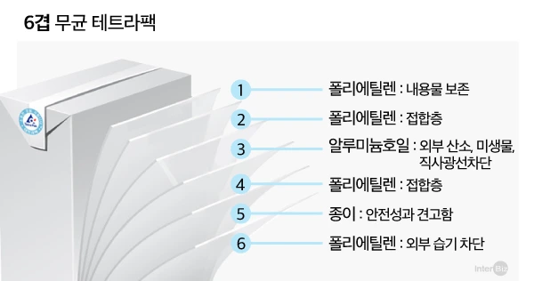 겉보기엔 조금 더 두꺼운 종이 정도라고 생각할 수 있지만, 테트라팩은 종이팩과는 확연히 다른 특징을 가지고 있다. 우선 경제적인 면에서 기존 포장재보다 효율이 높다. 테트라팩은 액체가 밖으로 새지 않는 알루미늄 코팅과 폴리에틸렌 코팅이 되어있다. 이는 액체를 흡수하지 않으면서 액체가 밖으로 새지 않아 내구성을 높이는 방식이다. 특히 알루미늄 호일은 포장 내용물 안에 산소와 빛의 침투를 막아 냉장 처리나 방부제 없이도 내용물을 안전하고 신선하게 보존 가능하다.