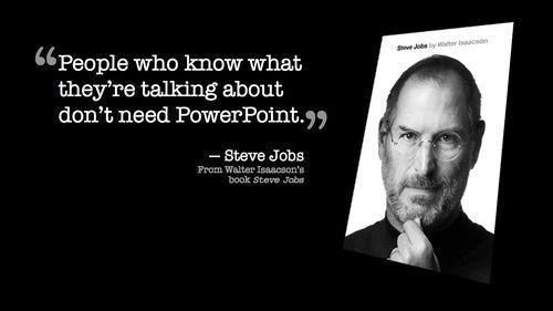 국내에 제로 PPT 유행이 퍼지기 한참 전부터 '노(NO) PPT'를 외친 대표적인 인물은 글로벌 IT 기업 애플의 창업자 스티브 잡스다. 그는 아이디어를 전달할 때 PPT의 슬라이드는 불필요한 존재라고 생각했다. 그는 "자신이 무엇을 말하고자 하는지 아는 사람들은 파워포인트를 필요로 하지 않는다(People who know what they're talking about don't need PowerPoint)"라고 밝히며 PPT의 비효율성을 강조했다. 그가 암 투병중일때 담당 의사가 PPT로 병세를 설명하자 불같이 화를 냈다는 유명한 일화도 전해진다.