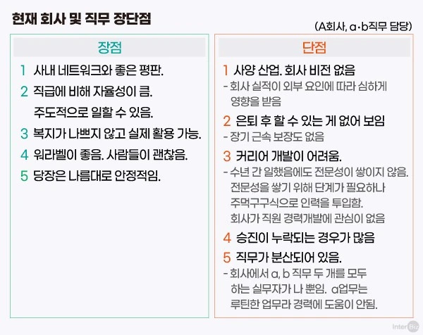 연봉 상승, 역동적 분위기 등은 좋은 장점이다. 업무가 명확해지는 건 좋지만, 앞으로 어떻게 전문성을 확보할 것인지 미리 생각해보고 처음부터 경력개발 로드맵을 잘 설계하는 것이 필요하다.