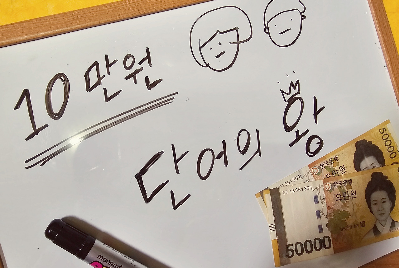 4:1로 아빠의 10만원 소유권이 확정되는게 느껴지자 엄마가 조급함에 똥줄이 타기 시작했다, 엄마의 실력은 자음 2개까지인가 보다. 엄마가 앞서 이미 진 것에 대해서는 다 무료화 해달라고 하면서 인생은 한방이니 제일 어려운 문제 하나로 승패를 가리자 했다. 아빠는 엄마의 일방통행 배째 아 몰라몰라 요구사항에 울며 겨자 먹기로 응했다. 그래야 게임이 끝날 것 같았다.