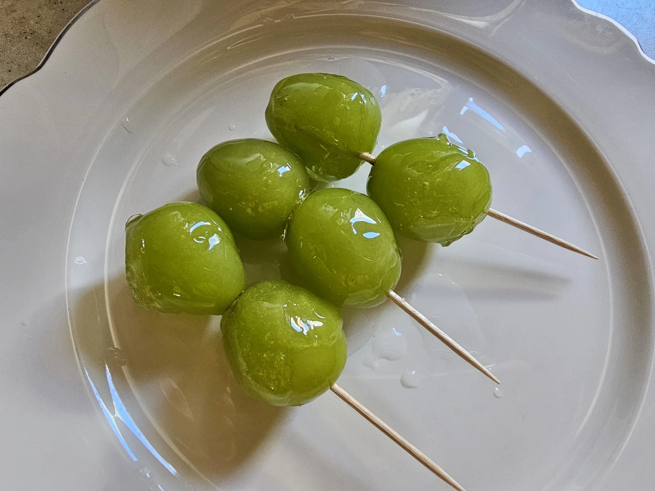끈끈이에 붙어버린 파리처럼 샤인머스킷에 나의 작고 소중한 가짜이빨이 떡-하니 붙어있었다.