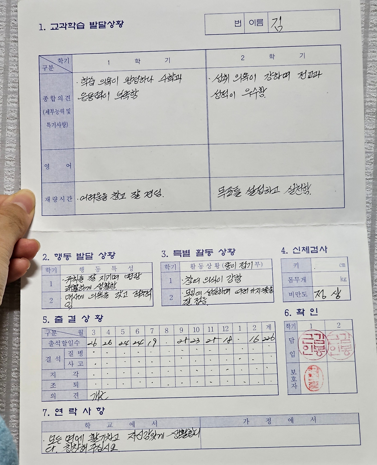 이때부터 산수는 못했다. 이때 수포자가 되어 고등학교 수학부진 학생으로 꾸준히 컨셉을 이어갔다.
