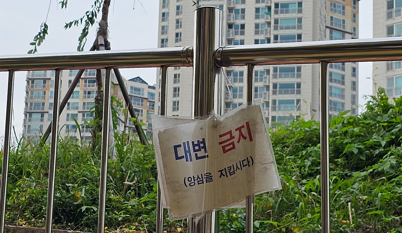 심심찮게 강아지 산책을 시키는 사람들이 많이 보인다. 그래서 저런 똥자루를 설치한걸까. 내 세금이 잘 쓰이는 것 같아서 뿌듯하다. 사람들이 개똥을 안 치우고 그냥 가서 그런 걸까 아니면 누군가가 개똥을 어딘가에 알뜰하게 쓰려고 저렇게 모으는 걸까. 이런저런 궁금함을 가득 앉은 채 개똥자루를 뒤로 하고 또 걸었다. 이번에는 또 다른 표지판이 눈에 보였다.