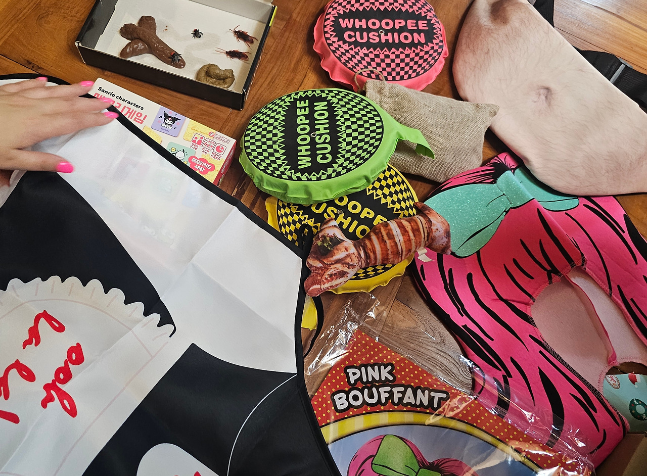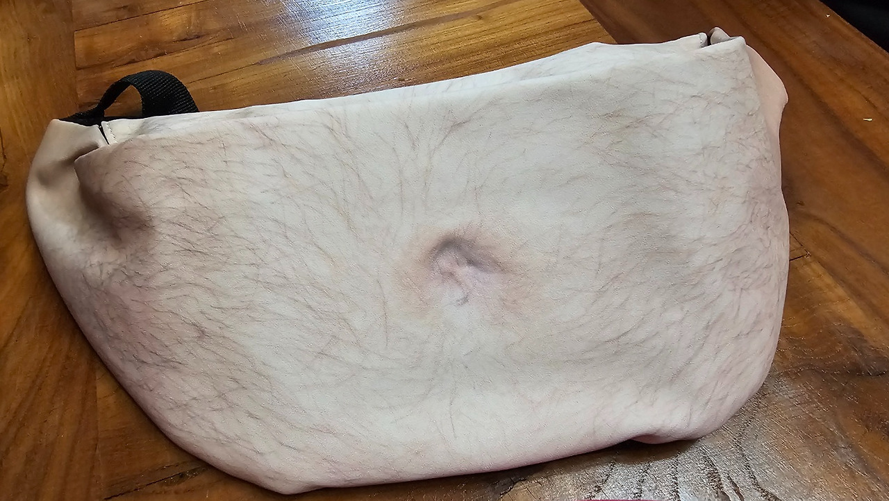 사진으로 보기에도 징그러운 모습이었지만, 실제로는 더욱 끔찍했다. 마치 현실감 10000% 그대로 튀어나온 듯한 징그러운 모습이었다. 누구라도 허리춤에 이 가방을 메고 다닌다면 백 프로 인터넷을 뜨겁게 달굴 것 같았다. 나는 이 선물을 보면서 살짝 위기감을 느꼈다. 이건 분명히 인정해야만 할 정말 쓸모없는 선물이다. 앞의 세 가지 선물들은 그래도 그나마 집에서 사용할 수 있는 수준이었다면, 뱃살 가방은 진짜 넘사벽이다. 다들 끔찍한 반응을 보이자, 선물을 준비한 J가 신나게 부연 설명을 했다. 가방을 살 때 털이 난 버전과 털이 없는 버전이 있었는데, 털이 난 가방이 더 혐오스러울 것 같아서 추가금 500원을 더 내서 샀다며 헛소리를 해댔다.
