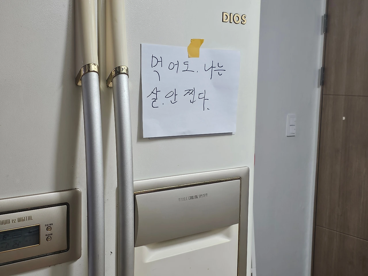 엄마는 '나는 날씬하다'라는 문구를 붙여놓고, 틈틈이 눈으로 확인하며 자기 암시를 걸었다.