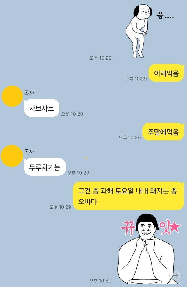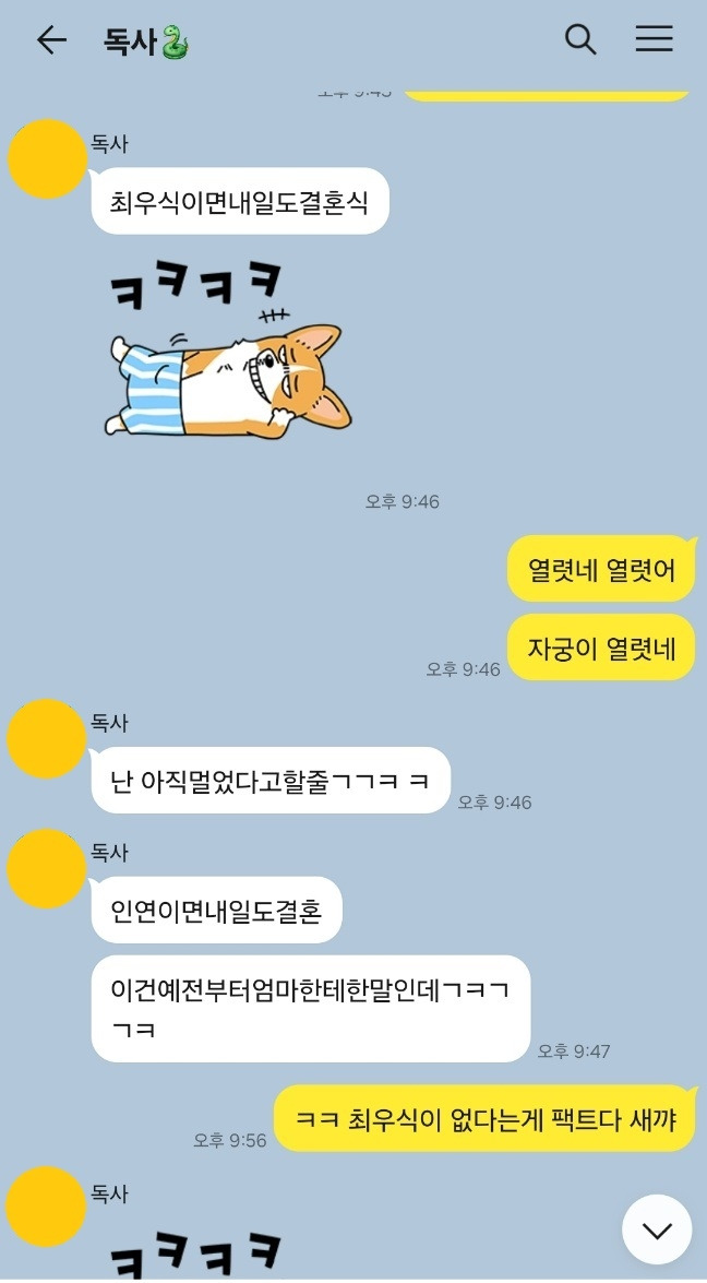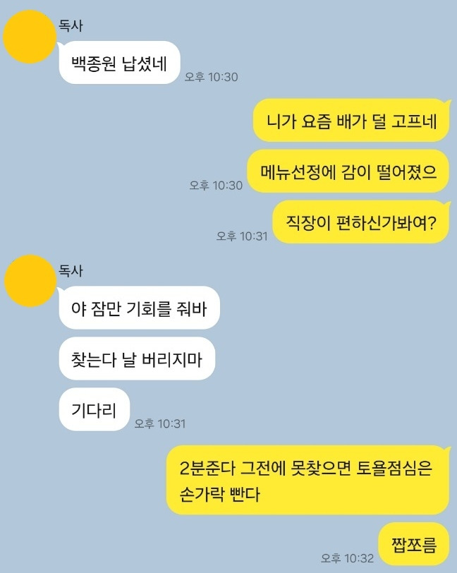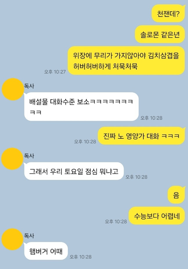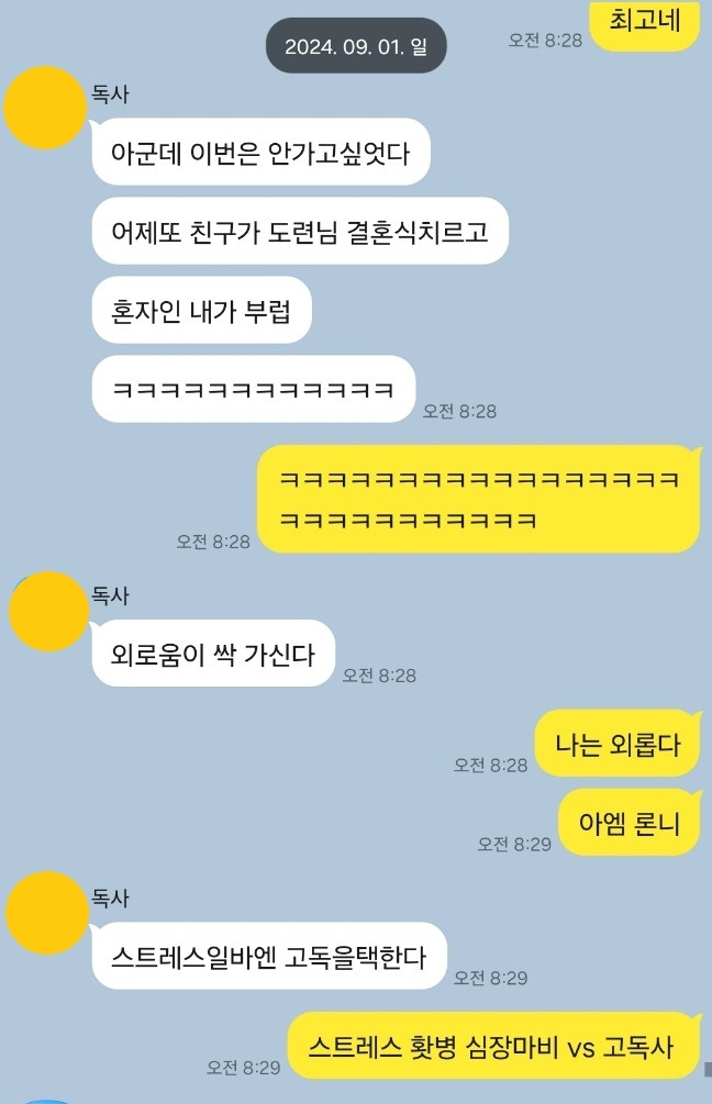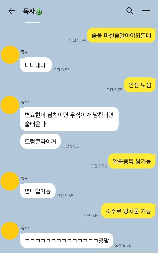 곧 마흔의 노처녀 둘이서 매일 16시간 동안 카톡을 주고 받는게 시간 낭비라고 여기는게 싫다. 답답한 마음에 나는 H와의 카톡창을 켜고 과거의 대화들을 훑어봤다.
