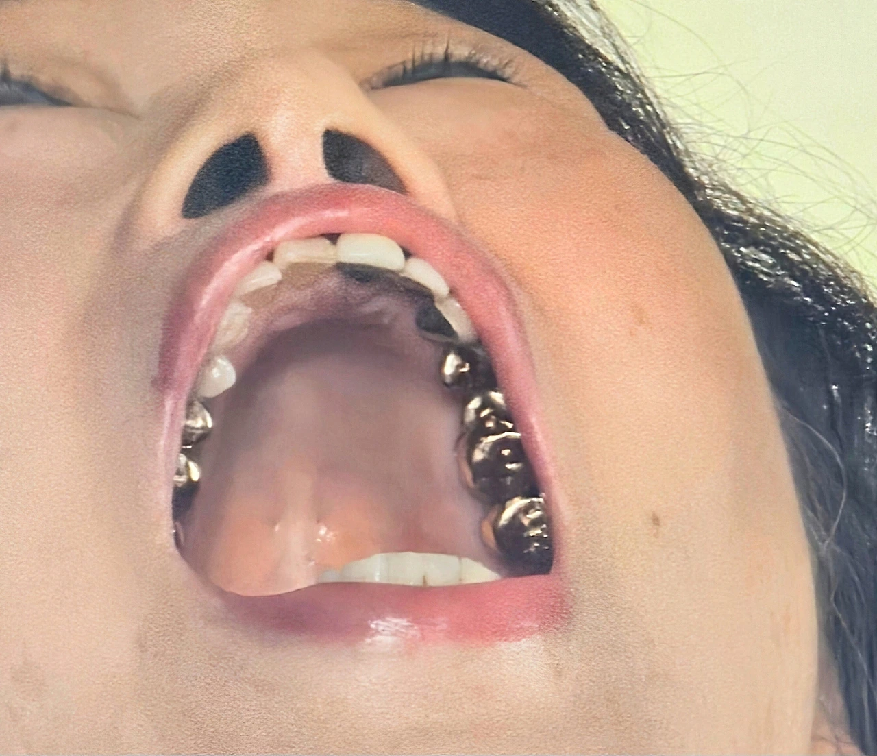 아빠의 말이 궁금해서 컴퓨터 의자에 앉은 채 엄마에게 입을 크게 벌리고 나를 봐달라고 부탁하고는 카메라를 확대해서 살펴봤다. 카메라 렌즈를 확대에에에에에에에 해보니,