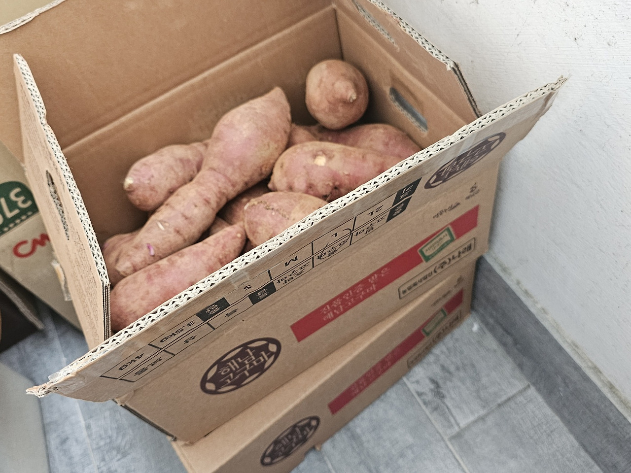 올 겨울 내내 고구마만 먹게 생겼다. 이모가 엄마한테 일당 대신 고구마를 들고가라고 한게 아닌가 조용히 의심해본다. 그리고 왠지 이제부터 이모는 엄마에게 부탁을 안할것 같다. 5만원치 일해주고 50만원치 들고왔다.