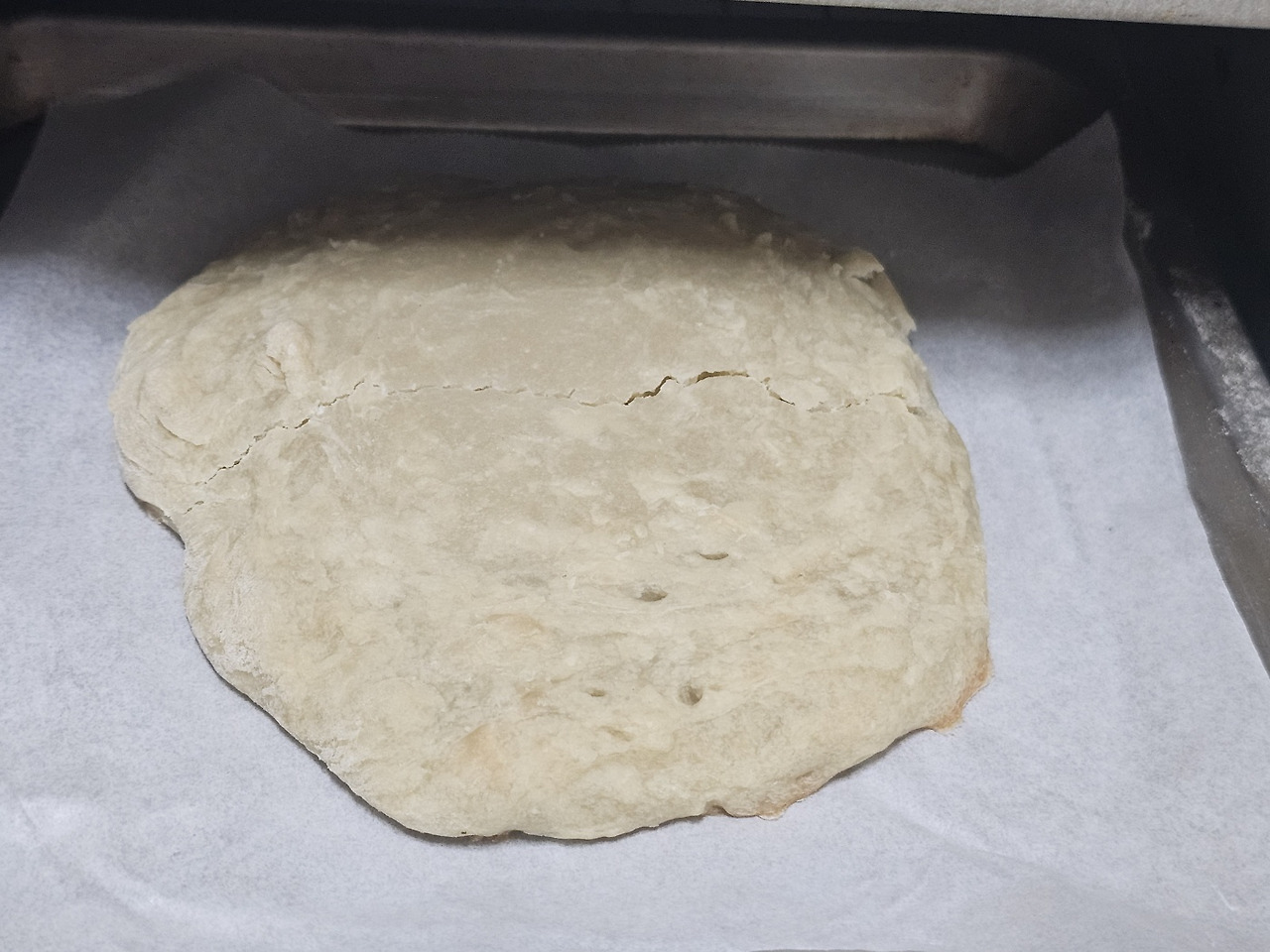 반죽은 이상하지만, 오븐에 넣으면 열에 의해 부풀어 오를 거라 믿으며 기다렸다. 15분이 지나고 오븐에서 반죽을 꺼내보니,