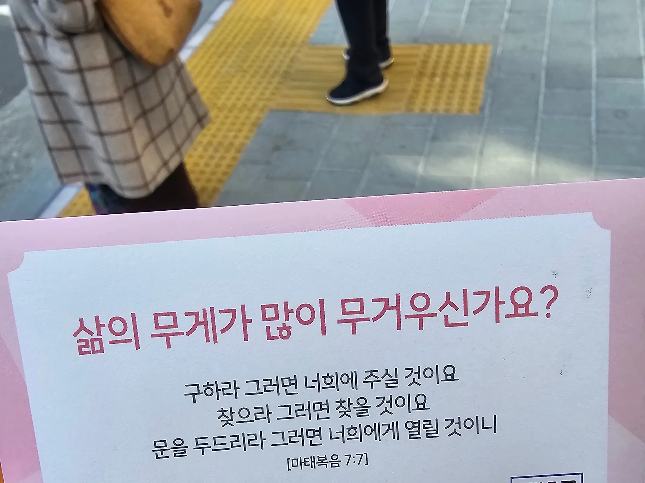 그리고는 '으 춥다'와 수줍은 미소와 함께 다시 오른손이 추운지 패딩 속에 손을 넣고는 다음 전도할 사람을 찾아