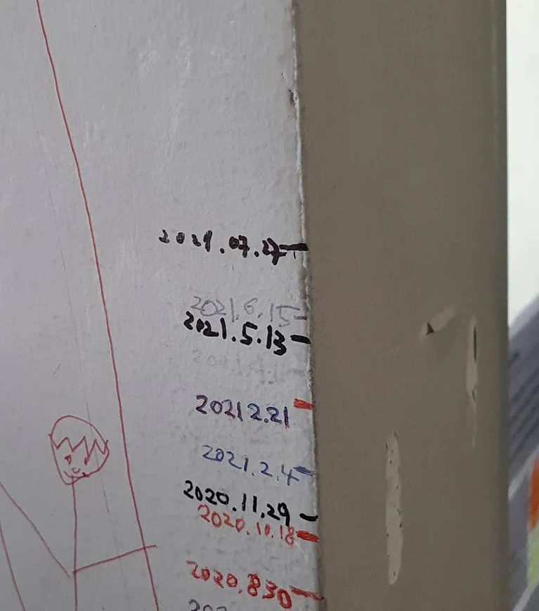 다행히 우리 집엔 어제 잔뜩 장 봐온 것들이 있었고, 냉장고엔 내가 작년부터 관심 갖게 된 저장식품도 꽤 있었으며, 한창 ‘셰프 놀이’에 심취한 남편도 있었다. 처음 해보는 재택근무에 긴장도 잠시, 남편은 일하는 틈틈이 식사와 간식을 만들기 시작했다. 집 밖에서 벌어지고 있는 일에 대한 두려움을 잊기 위해서 온 가족이 운동도 시작했다. 거실 한쪽 벽에 서서 오랜만에 키를 잰 만두는 이전보다 1cm 더 높은 곳에 표식을 그렸다. 그 어떤 상황에서도 아이는 무럭무럭 자라는 모양이었다. 곧 만두의 초등학교 입학식 일정이 있었는데 하노이의 셧다운으로 인해 입학이 2주 연장되었다. 격리 기간에 입학식을 하면 어쩌나 했는데 다시 입학식에 갈 날을 꿈꿀 수 있게 되었다. 다행이다.