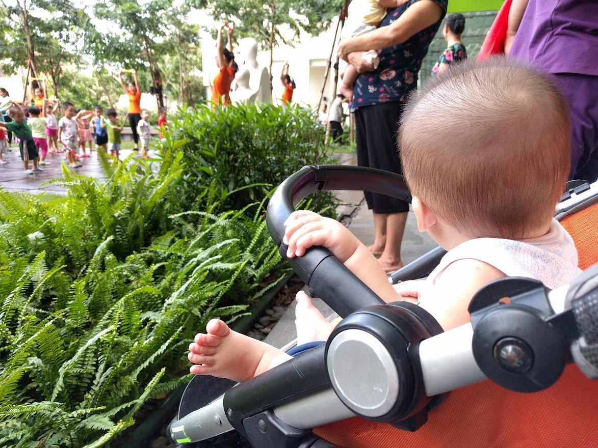 이사 후 짐 정리를 하고, 식탁을 새로 사고, 출산에 필요한 것들을 챙기니 아이가 금세 세상에 나왔다. 외출이 어려운 출산 후부터 나는 아파트 안에서 시설을 누리며 살았다. 오전에 한번, 오후에 한번 더위와 추위를 피할 수 있는 시간마다 나는 아이를 데리고 어김없이 산책을 했다. 아이가 유모차에 앉을 수 있게 되자 나는 아파트 밖에서는 시도 때도 없이 만나는 울퉁불퉁한 요철 하나 없이, 편하고 안전하게 바퀴를 굴릴 수 있는 단지 안 산책길이 너무 고마워졌다. 어딜 가든 아이들이 차고 넘치는 곳이 베트남이었지만, 유독 이 아파트에는 미취학 아동들이 넘쳐댔다. 아이를 키우기에 좋은 곳이라는 내 판단이 베트남 젊은 부모들의 생각과 다르지 않은 듯했다. 아침마다 단지 안 유치원 앞의 공터에선 50~60여 명의 유치원생들이 아침 체조를 빙자한 춤을 췄다. 온 동네 미취학 아이들과 그 아이들을 돌보는 할머니 할아버지들과 보모 아주머니들이 모두 모여 그 모습을 한참 구경했다. 그 아침체조 시간에 함께하는 것은 나와 아이에게도 중요한 하루 일과의 시작이었다. 체조가 끝나면 나는 산책로를 걸었다. 곳곳에 다른 보호자들이 이 아파트에서 눈에 띄는 한국 아가와 엄마에게 반갑게 말을 걸어 주었다. 어젠 잠을 잘 잤나, 오늘은 분유를 몇 미리 먹었나, 이제 몇 킬로가 되었나, 이는 몇 개 났나, 여기 상처는 왜 났나, 열은 내렸나, 기저귀는 언제 떼나, 유치원은 언제 보내나…… 등등 아이를 돌보는 이들의 대화는 늘 비슷했다. 그러나 이런저런 인사와 안부를 주고받으며 걷다 보면 1km가 채 못 되는 그 산책로를 왕복하는 데는 한 시간이 훌쩍 지났다. 나는 하루에 두 번씩, 많은 이웃들에게 관심을 받는 그 산책 시간이 참 고마웠다.