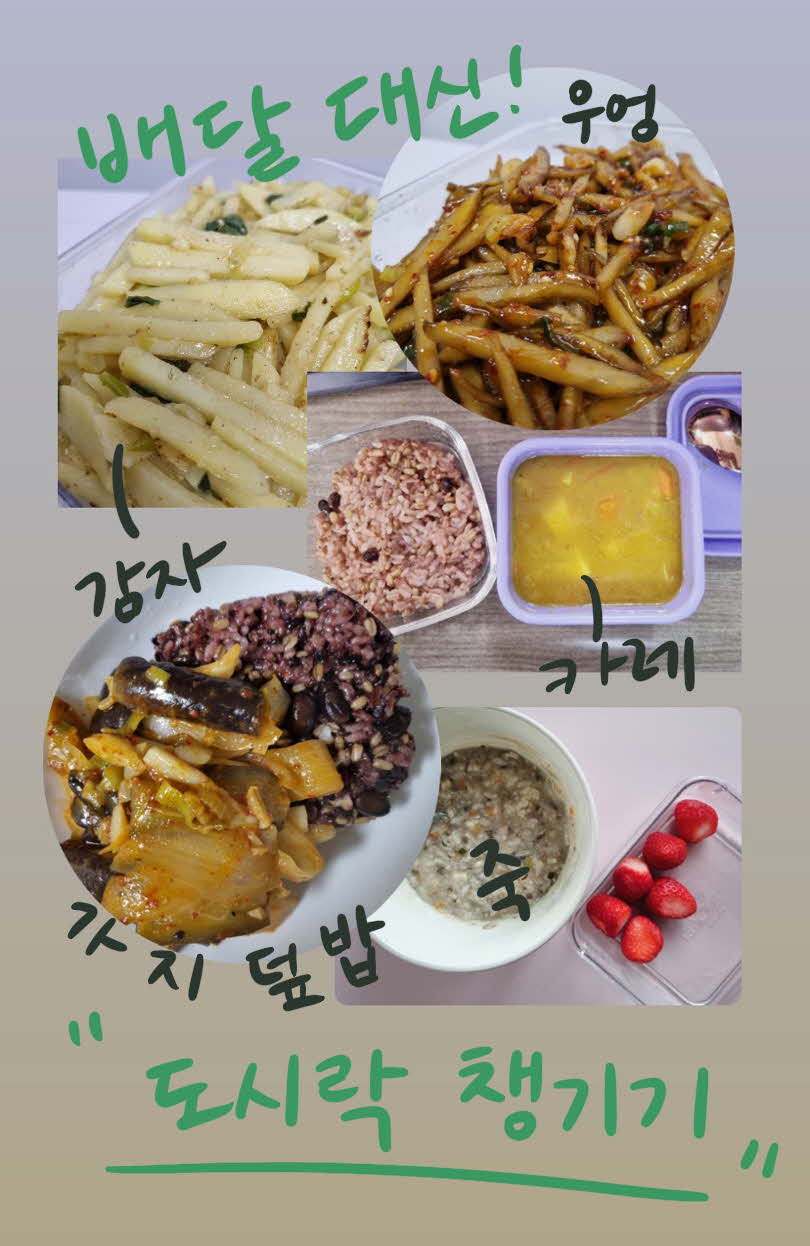 감자: 저도 여력이 되면 도시락을 싸서 다녀보고 싶어요. 채식을 지향하고 있지만 회사에선 제가 식사를 선택하기 어려워서 매번 마음으로만 챙겨야지, 다짐하곤 해요. 그나저나 우엉과 감자볶음 너무 맛있어 보여요!