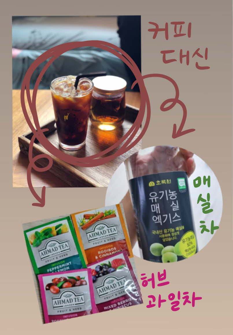 감자: 사실 전 커피를 아예 빼는 건 너무 어려울 것 같아서 이번에 도전하지 않았는데 덩달아 저도 줄여야겠다는 생각이 들었어요. 그래서 평소의 절반 정도로 줄이고 있어요.