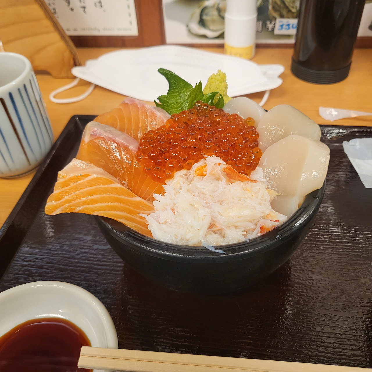 싱싱한 회와 새우 조개 등이 양념된 밥 위에 올려져 있는 카이센동이 나왔다. 이걸 먹기 위해 이 이른 새벽부터 사람들이 나온다 생각하니 인생이 약간 어이없어지는 느낌이 들기도 했지만 고가의 카이센동은 내 입 속에서 제 값을 했다.