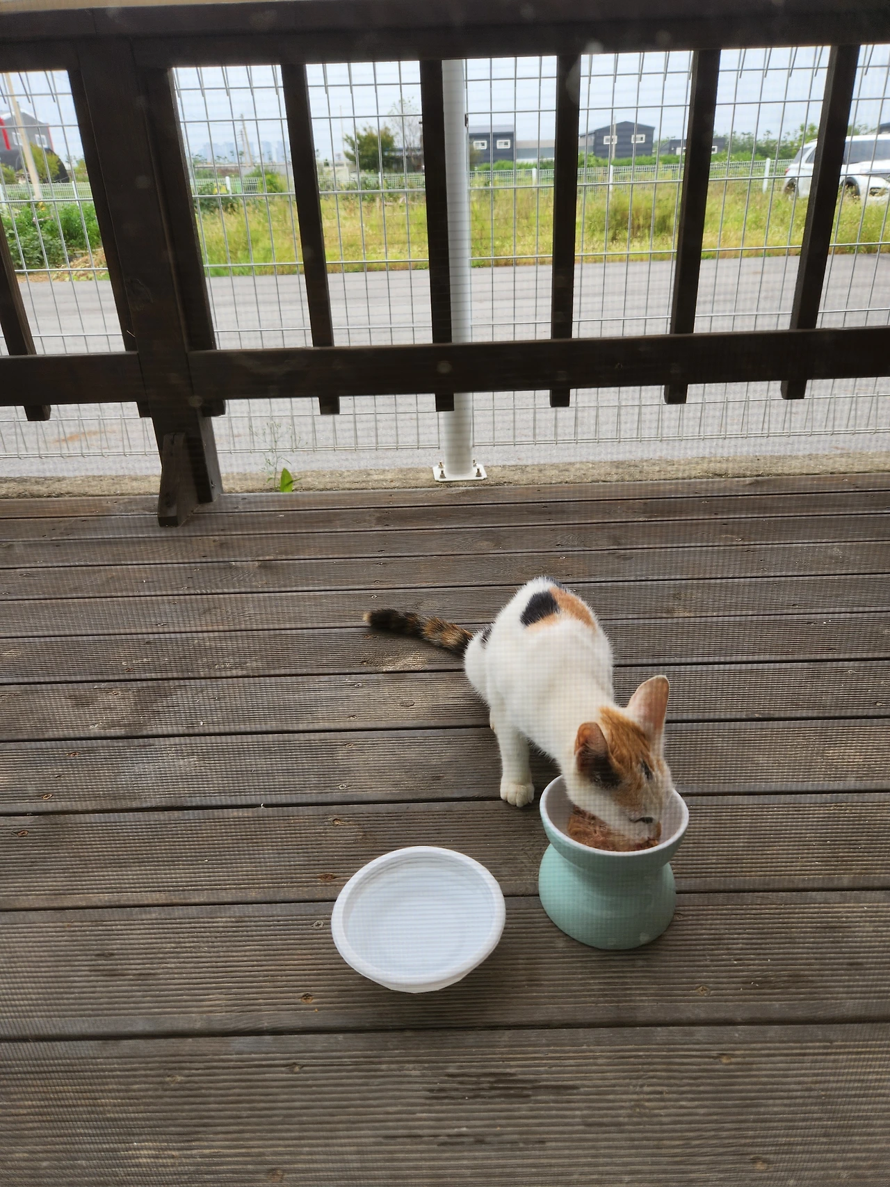 고양이는 다음 날 또 왔다. 식빵이 없어서 참치 캔을 줬더니 욤욤, 잘도 먹었다. 오전에 오더니 오후에 다시 왔다. 내가 내다보자 이번에는 야옹야옹 운다. 고양이에 대해 아무것도 모르지만 어쩐지 그 의미를 알 것 같았다. 버리려고 했던 묵직한 반려견 식기를 꺼내오고 고양이 사료를 시킨 것은 그 때문이었다. 다용도실 한 켠에 고양이 사료를 놓고 스푼도 갖다 놓았다.