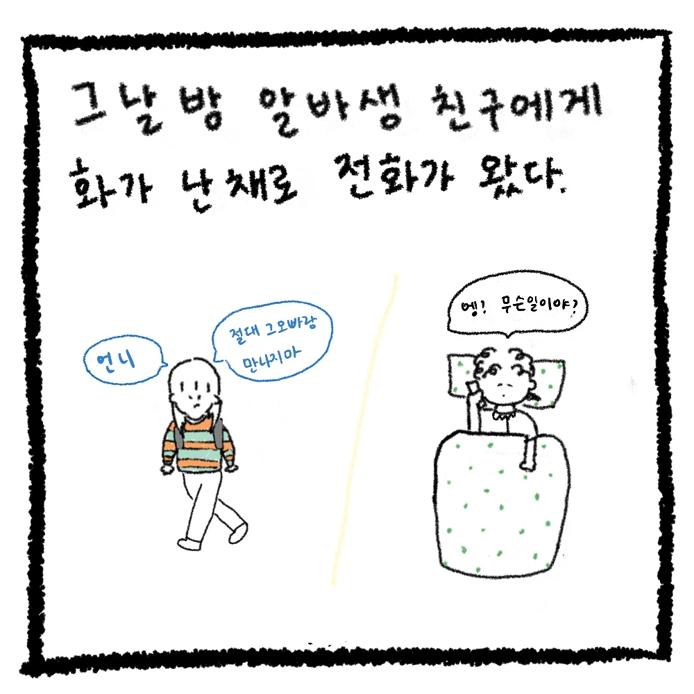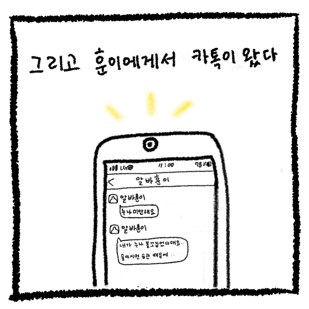 훈이와 일하고 나온 알바동생에게 전화가 왔다