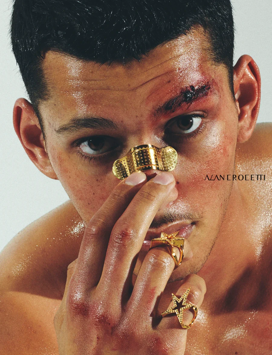 브라질 태생의 주얼리 디자이너 알란 크로세티는 마치 파이터를 연상케 하는 제품을 만든다. 입술에 끼우는 마우스피스, 콧등 상처 위에 밴드처럼 올리는 반짝이는 장식을 소개한다. 그는 어려서부터 항상 왜 여성들이 연약한 존재로 묘사되는지 이해할 수 없었다고 한다. 게다가 남성도 흔한 고정관념처럼 강인한 존재인 것은 아니라고 언급했다.