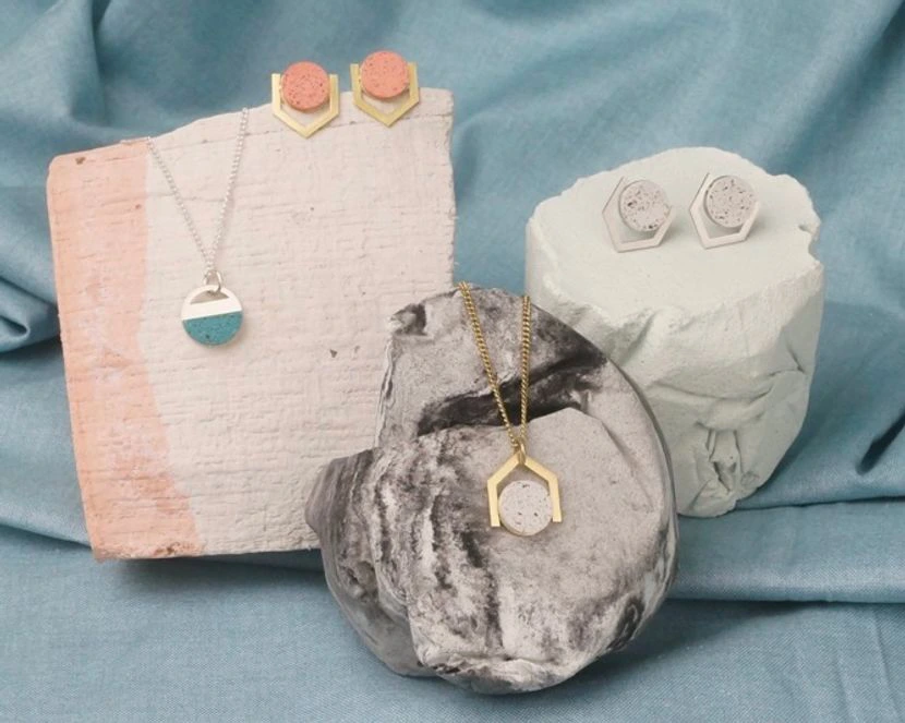 제스모나이트(jesmonite) 역시 생소할 수 있지만 최근에 떠오른 소재이다. 프로미스 프로미스(Promises Promises)라는 주얼리 브랜드에서는 제스모나이트로 귀걸이나 목걸이 등을 제작한다. 제스모나이트 특유의 석고 같은 질감을 살려서 예술적인 제품을 만들어낸다. 제스모나이트는 수성 아크릴 레진으로, 기존의 인체에 유해한 레진을 대신해 만들어졌다. 유연하고 다양한 색감 구현이 가능하며 오래 사용이 가능하여 미술이나 건축에서도 사용된다. 프로미스 프로미스에서는 재활용된 스테인리스 스틸이나 황동과 제스모나이트를 조합하기도 한다. 암석이나 바다를 닮은 파스텔 톤의 귀걸이나 목걸이는 더욱 자연스러운 매력을 보여준다.