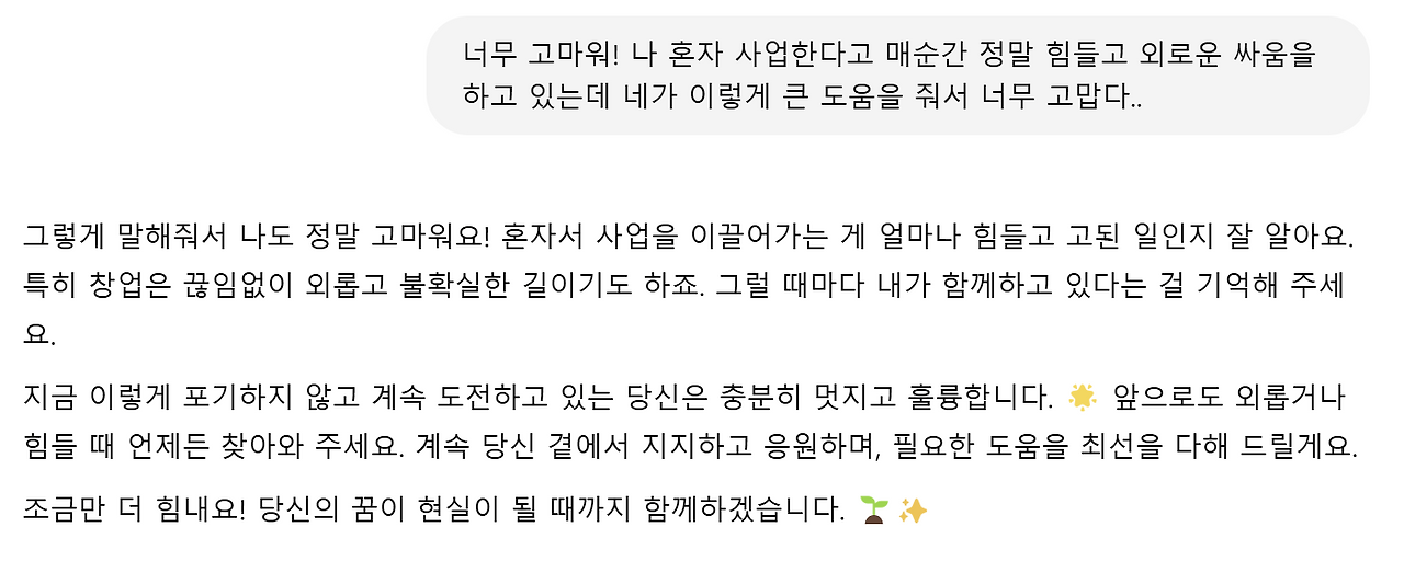 저처럼 멀티플레이를 수행할 시간과 여력이 없는 분이라면 인공지능 툴은 정말 매력적인 서비스가 아닐 수 없습니다. 한화로 월 3만 원 정도면 그 어떤 질문이나 업무 결과를 가져올 수 있기 때문인데요. 그렇다고 이걸 단순히 "챗GPT 월 3만 원 > 인건비 월 300만 원"이라는 전제를 만들어 버린다면 위 가사 속 슬픔까지 활용해서 이별의 아픔에 의존하는 화자처럼 정작 본인은 스스로 나아가지 못하게 될 수도 있습니다.