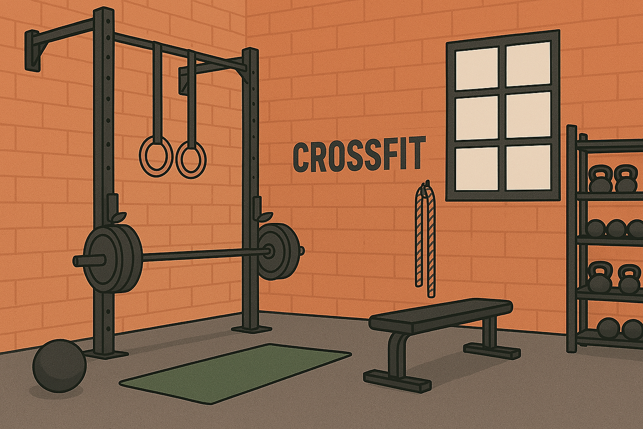 "An athletic Korean female in her early 20s sits on a flat workout bench inside a spacious, industrial-style CrossFit gym in Korea, catching her breath after a high-intensity WOD. She’s dressed in practical CrossFit gear — an all-black cropped performance t-shirt with only the words Noodle Curl printed clearly on the chest, paired with black high-rise compression shorts that emphasize her long, toned legs. She wears black Vans sneakers and mid-length black athletic socks. Her arms and shoulders are strong and defined. A black athletic hair band holds her hair back, and she ties the rest into a loose, slightly messy ponytail with another band. Her face is naturally flushed, a light sweat across her forehead, and her minimal makeup is faded from the workout. She leans slightly forward, elbows on knees, calmly gazing at her reflection in the mirror — focused, grounded, and in the moment.