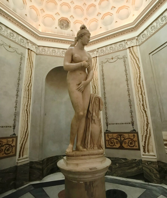 <캄피톨리오의 비너스>는 신비스럽게 균형 잡힌 청초한 모습이 인상적입니다. <아우구스투스의 흉상>은 황제의 홀에 놓여 있습니다. 박물관에 있는 많은 아름다운 고전 조각 가운데 하나입니다. <플라비아 여인의 두상> 1세기의 대리석상으로 당시 귀족사회에서 유행한 머리 모양을 보여준다고 합니다. ‘철학자의 방’에는 그리스 철학자, 정치가, 과학자, 문학가들의 조각상이 소장되어 있습니다. 희귀한 붉은 대리석 조각상인 <파우누스 신의 상>도 있습니다.