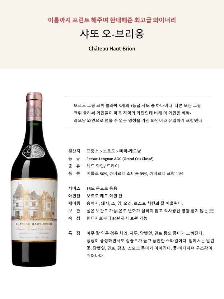 [5] 샤또 오-브리옹(Château Haut-Brion): 보르도 그랑 크뤼 클라쎄 5개 1등급 와이너리 중 한 곳