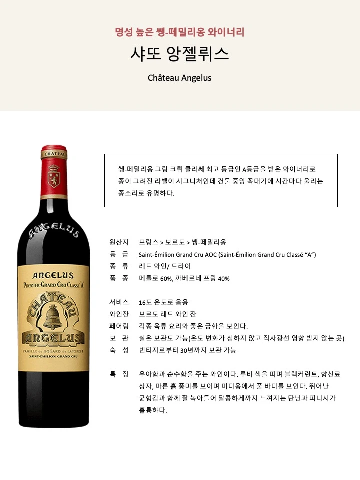 [12] 샤또 앙젤뤼스(Château Angelus): 쌩떼밀리옹 그랑 크뤼 클라쎄 A등급의 와이너리
