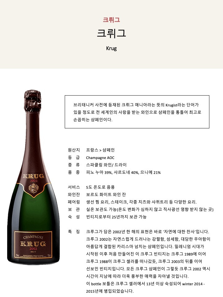[21] 돔 페리뇽(Dom Pérignon), 크뤼그(Krug): 샴페인 이름
