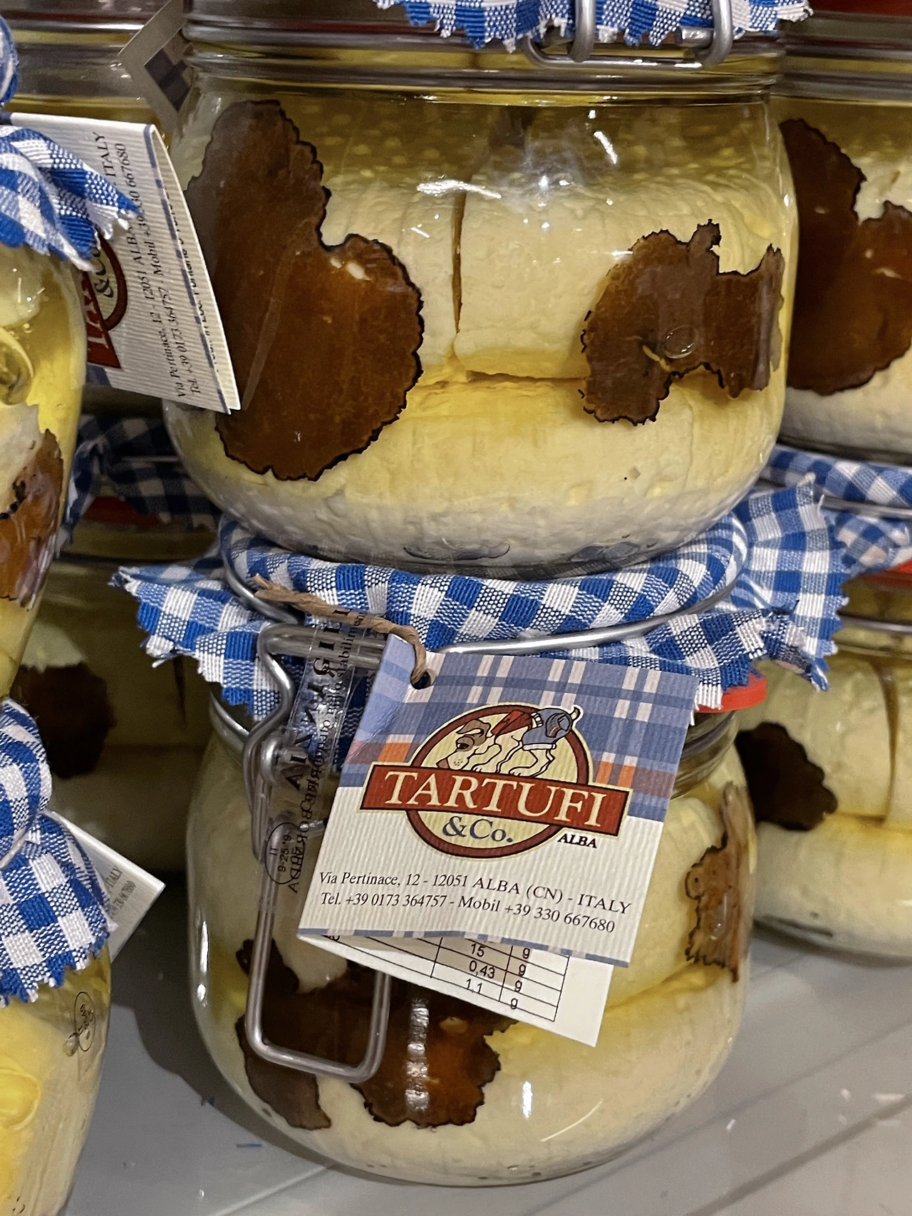 가방에 와인 두 병을 단단히 챙겨 메고, 트러플 제품들을 구경하기 시작했다. 우리가 방문했던 8월 31일은 아직 트러플 수확시기가 아니었기에 신선한 화이트 트러플을 만나는 것은 어려웠다. 아쉬운 마음에 블랙 트러플 절임과 화이트 트러플 치즈 소스 그리고 트러플 향이 나는 따야린 면을 한 봉지 구입했다.