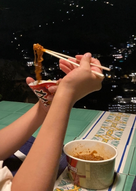 그런데 사실 놀란 건, 남편이었다. 남편은 자기 것도 사달라는 말이 자신의 입에서 나왔다는 것에 놀랄 수밖에 없었다. 남편은 2015년 당시, 베를린에서 교환학생 생활을 했었다. 장장 6개월이라는 기간 동안 매일 맥주를 마시며, 한국인의 탄수화물 일일 권장량 한계치를 한참은 넘기고 있었기에, 따로 면을 찾아 먹지 않았었다. 그러니까, 남편은 기본적으로 해외에서 한식을 찾아 먹지 않는 사람이었다. 그런데, 그런 남편이 해외여행에 챙겨갈 컵라면을 고르기 시작했던 것이다.