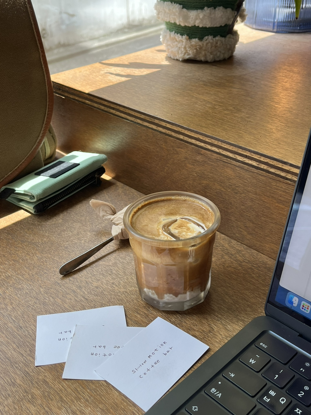 카페가 있지 않을 것 같은 곳에 있는 카페를 좋아한다. 사장님의 취향이 잔뜩 묻어 나오는 곳. 대체로 나는 우드톤으로 꾸며져 있는 아늑한 공간을 선호한다. 카페의 인테리어가 너무 모던하거나 너무 귀여워 버리면 자꾸 주위를 둘러보다가 불편해져버려 빠르게 음료를 마시고 이내 나가버리게 된다.