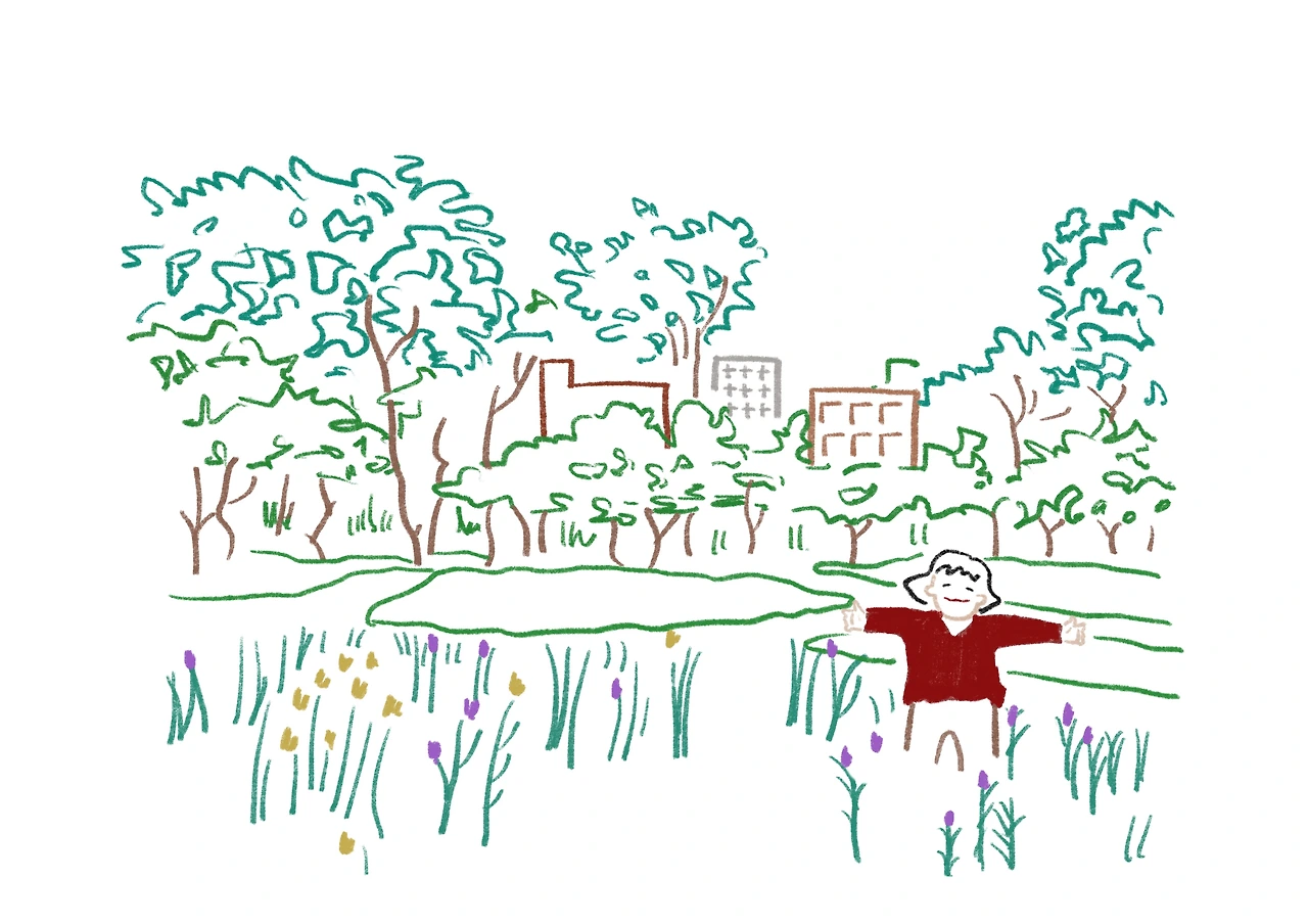 제가 효창공원 근처에 있는 회사에 다녔어요. 집 외에 많은 시간을 보낸 곳이죠. 처음 회사가 있는 효창공원에 갔을 때, 마을버스를 타고 만리시장길을 따라 올라가는데, 마치 시골 같았어요. 사무실에 들어서면 효창공원이 바로 보였어요. 효창공원은 서울에 있는 공원 중에서 가장 좋아하는 곳이에요. 효창공원은 경사지 전체에 있어서 그런지 야생미가 느껴졌어요. 가꾸어지지 않은 자연스러움을 느낄 수 있었죠. 사무실이 공원에 바로 면해 있어서, 점심시간에 산책도 하고, 도시락을 싸와서 먹기도 했어요. 정말 가까이 있어서, 일하다가 스트레스를 받으면 잠시 쉬기도 했죠. 일종의 도피처 같은 곳이었죠. 그러다가 회사가 더 넓고, 교통이 편한 곳으로 이사하게 되었어요. 전 사무실보다 훨씬 넓어졌는데도 불구하고 답답한 느낌이 들었어요. 교통은 편리해졌지만, 주변에 쉴 수 있는 공간이 전혀 없었어요. 그때 사람이 공간에서 시간을 보낼 때, 넓은 면적만 중요한 것이 아니라 공원과 같은 자연환경을 가까이 두는 것이 삶의 질에 있어서 큰 영향을 준다는 것을 깨달았어요. 그때부터 집 근처에도 공원이 있었으면 하는 생각을 많이 하게 된 것 같아요.