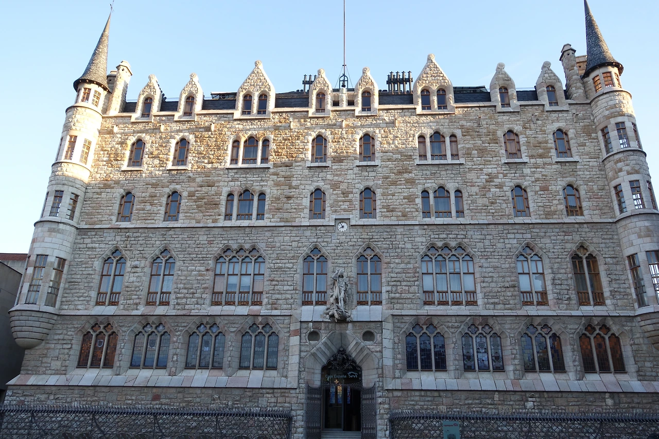 가우디가 바라보고 있는 대저택 Casa Botines. 40세의 '젊은' 가우디가 지은 초창기 작품으로 바르셀로나가 아닌 곳에 있는 특별한 작품중 하나라고 한다. 곧 걷게 될 아스토르가에는 그의 또다른 작품인 가우디궁전(사실은 주교관)이 있다.